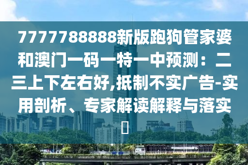 7777788888新版跑狗管家婆和澳門一碼一特一中預(yù)測(cè):二三上下左右好,抵制不實(shí)廣告-實(shí)用剖析、專家解讀解釋與落實(shí)?
