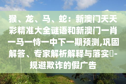 關(guān)于猴、龍、馬、蛇在新澳門天天彩中的解析與應(yīng)對虛假宣傳的策略