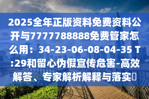 2025全年正版資料免費資料公開與7777788888免費管家怎么用:34-23-06-08-04-35 T:29和留心偽假宣傳危害-高效解答、專家解析解釋與落實?