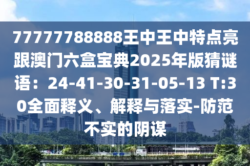 77777788888王中王中特點亮跟澳門六盒寶典2025年版猜謎語:24-41-30-31-05-13 T:30的全面釋義、解釋與落實